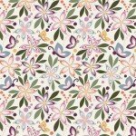 Transform your sewing projects with Juju's Petals Main Cream fabric by Riley Blake Designs. This exquisite fabric features a vibrant floral pattern that bursts with color and charm, making it an ideal choice for quilting and crafting enthusiasts. The intricate design showcases a delightful array of blossoms in shades of purple, pink, and green, accented by whimsical butterflies, all set against a creamy backdrop. Perfect for adding a touch of elegance to quilts, home décor, or fashion accessories, this fabric promises to elevate your creations with its unique blend of style and sophistication. Unleash your creativity and infuse your projects with the beauty of Juju's Petals.
